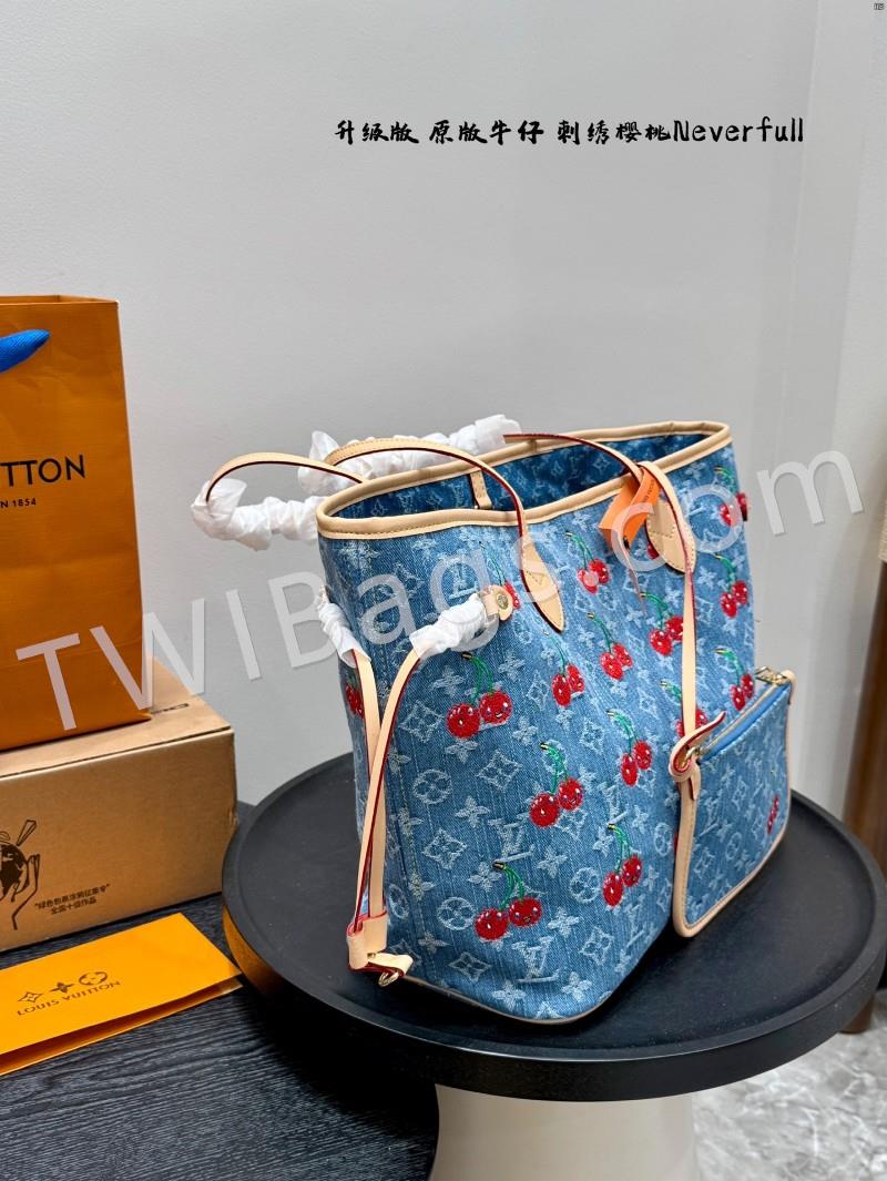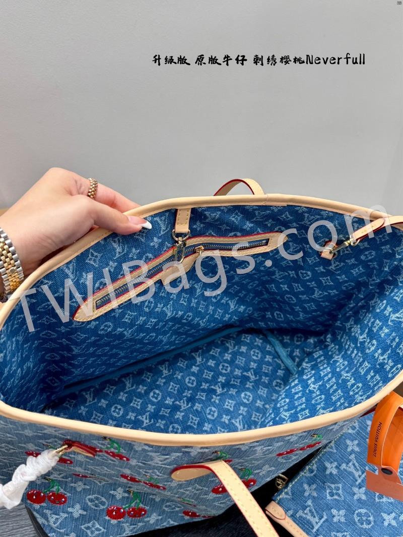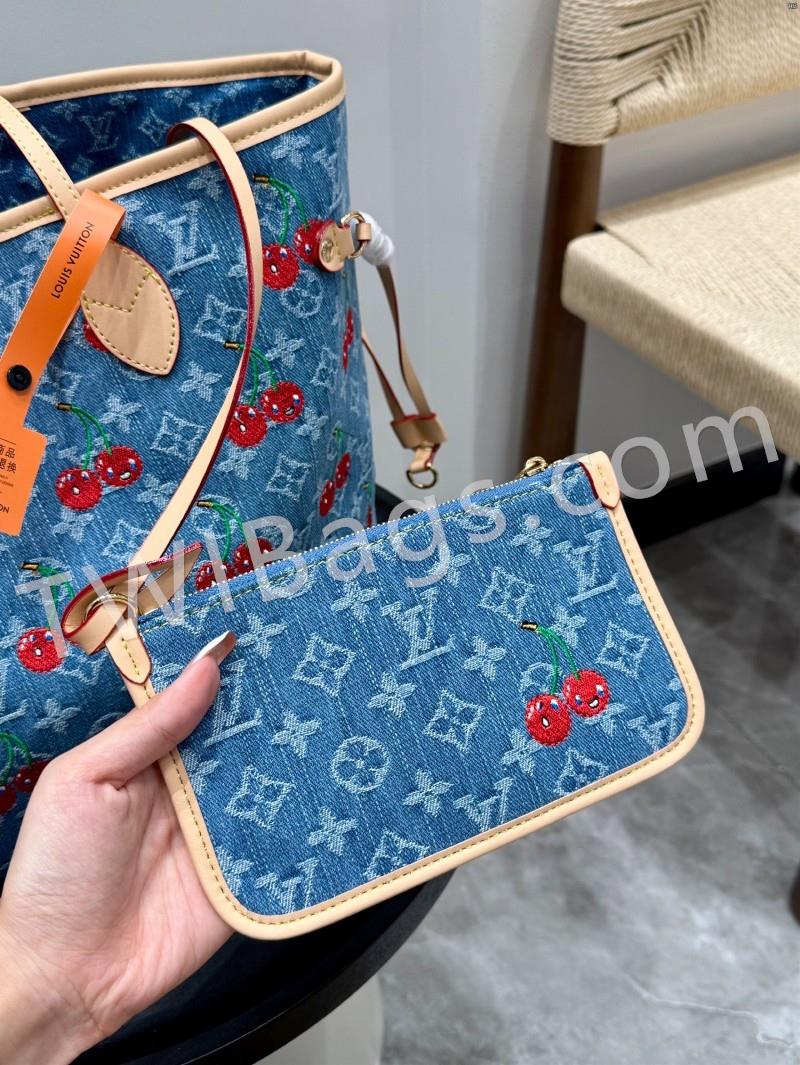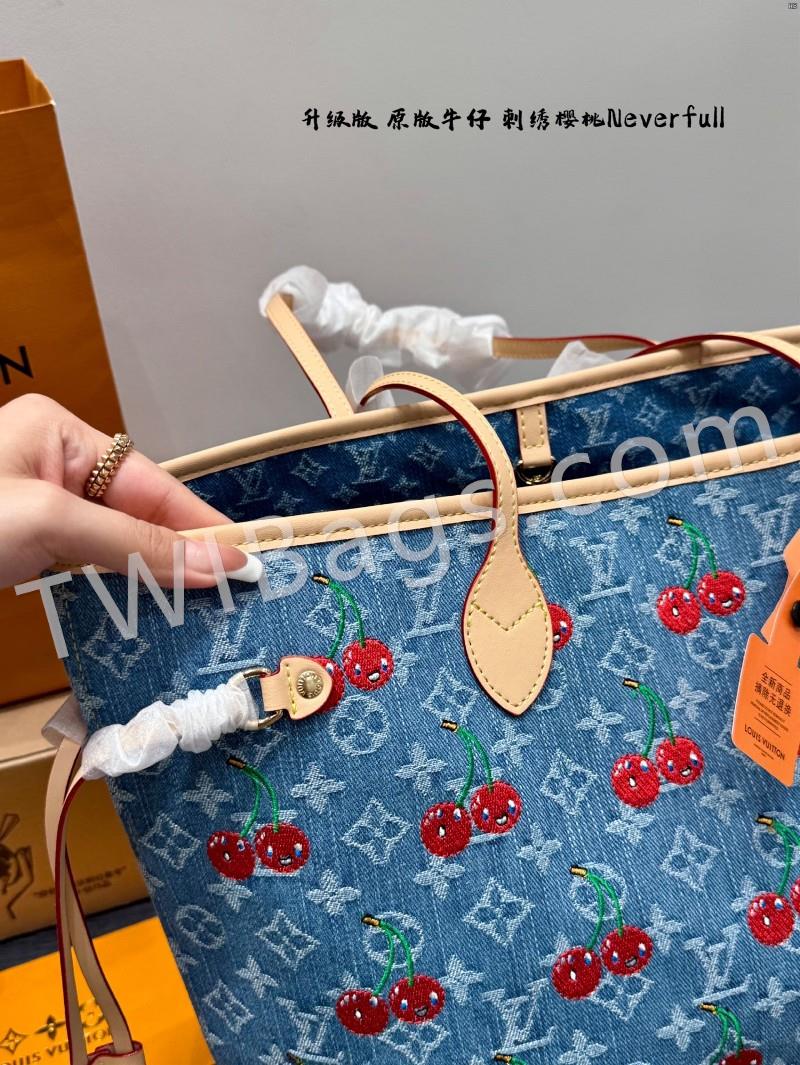 LV co-branded cherry series 🍒Neverfull classic denim denim shopping bag