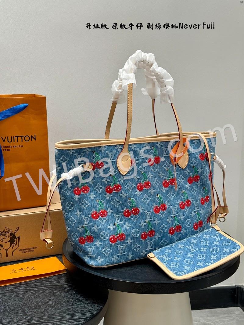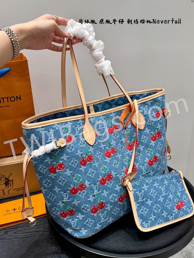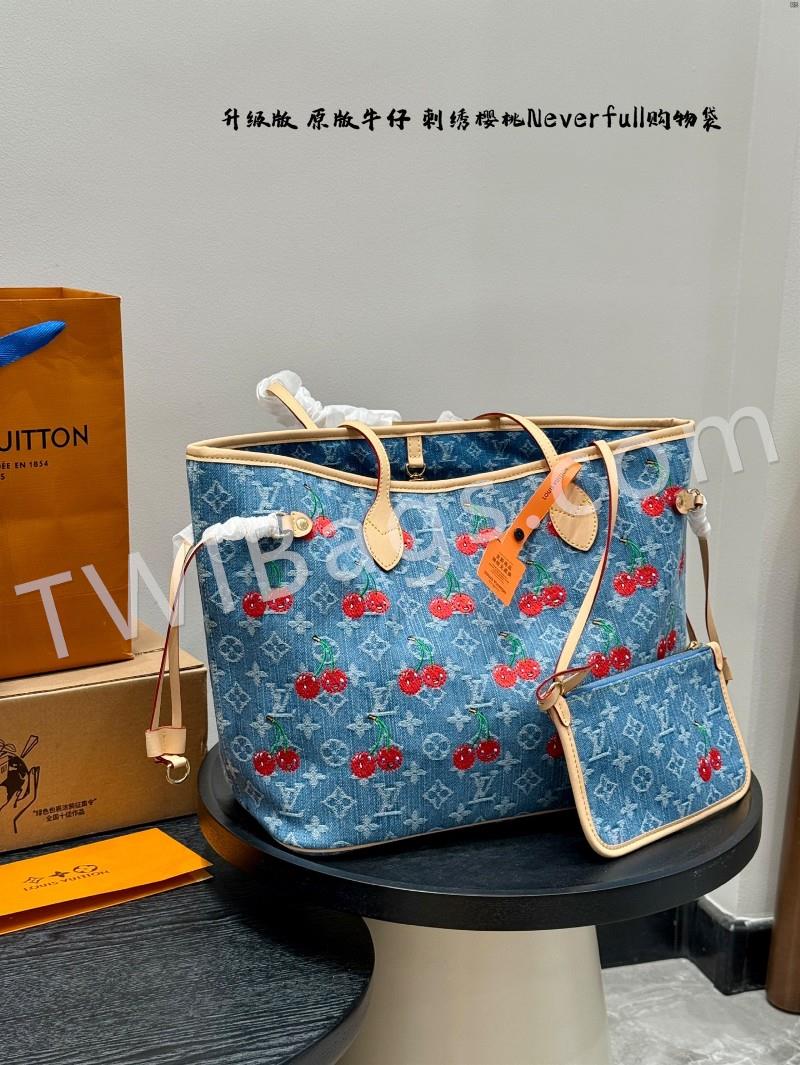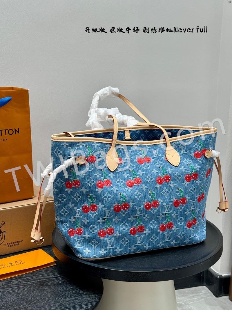 LV co-branded cherry series 🍒Neverfull classic denim denim shopping bag