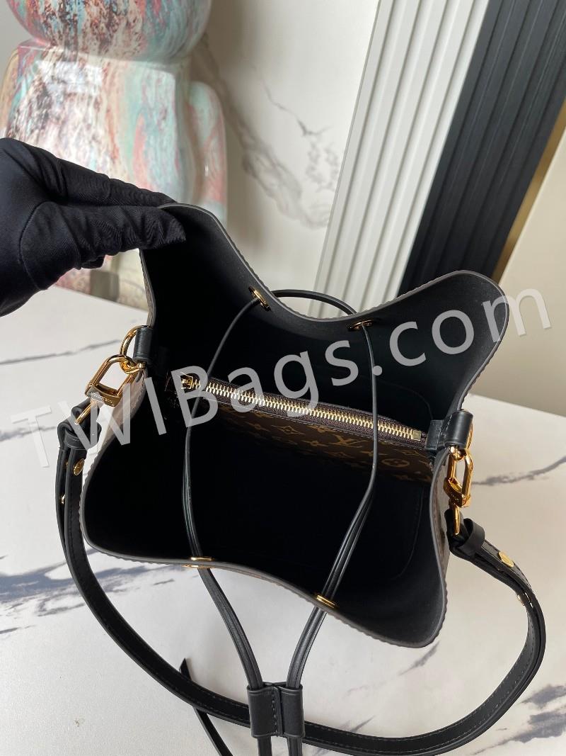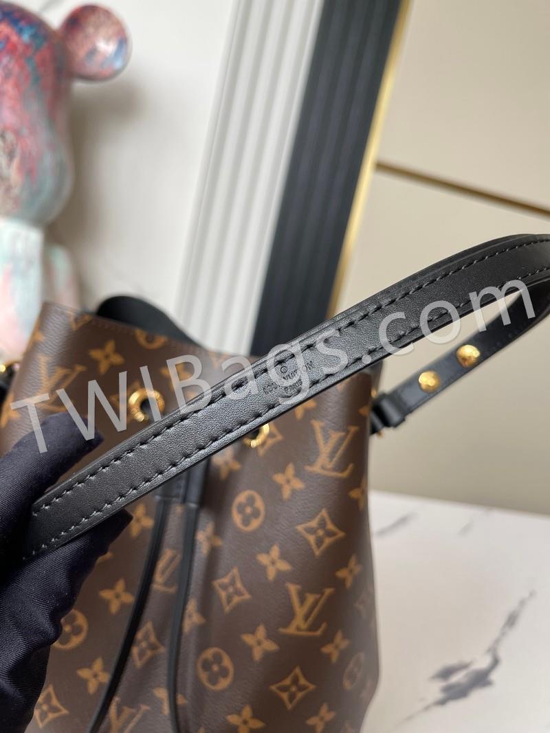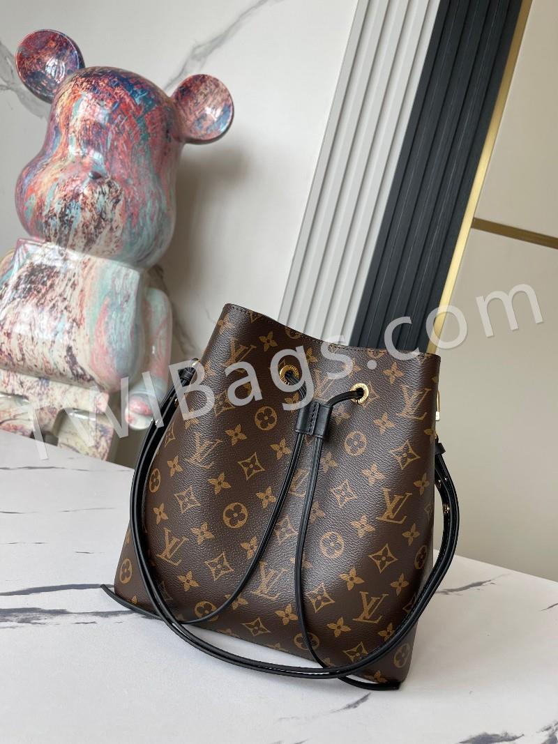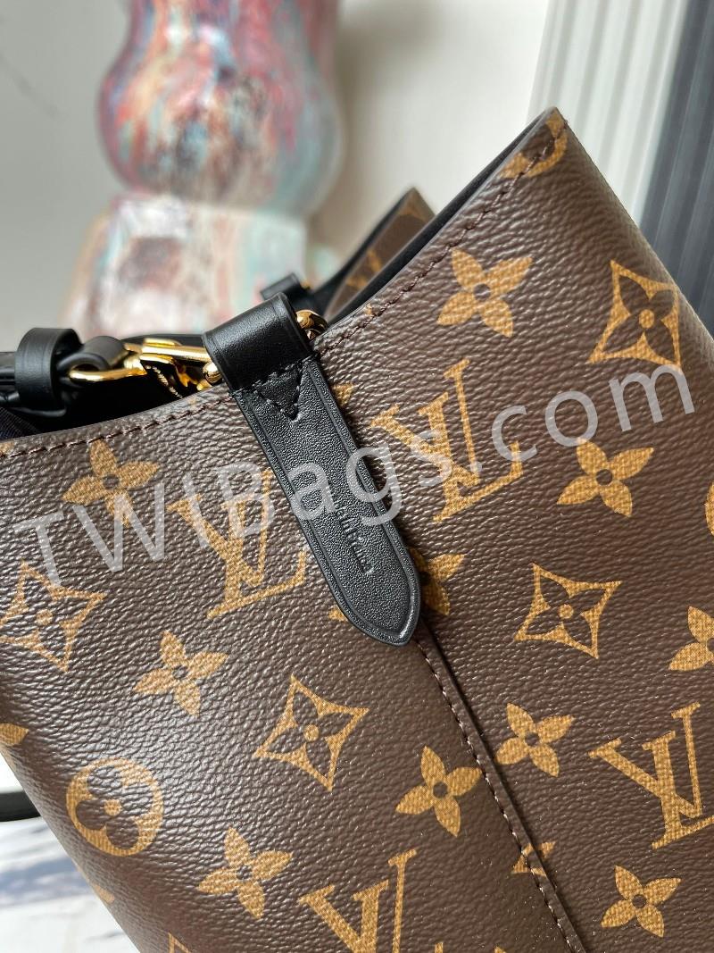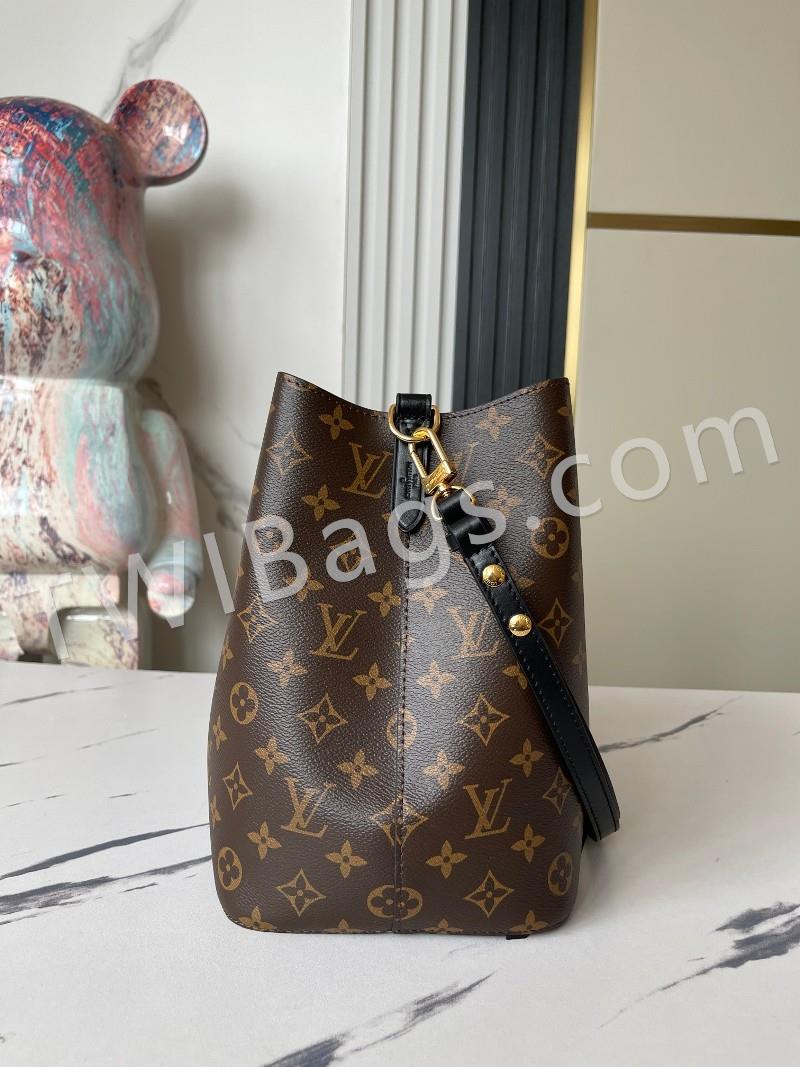 M44020 Black Presbyon Bucket Bag Neonoe is made of soft Monogram canvas fabric and decorated with colorful calfskin Adjustable straps make it easy to create a modern crossbody look, measuring 26.0×22.0×27.0cm