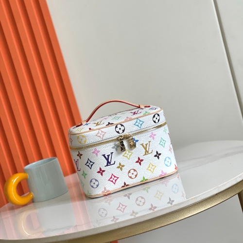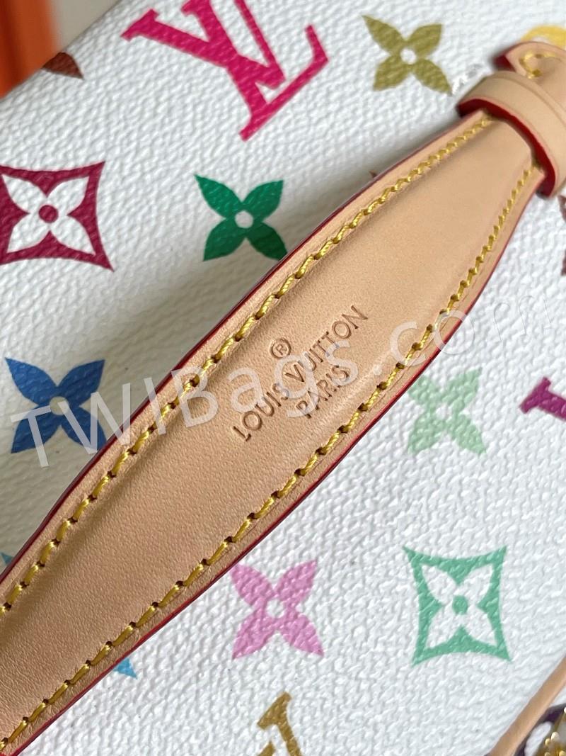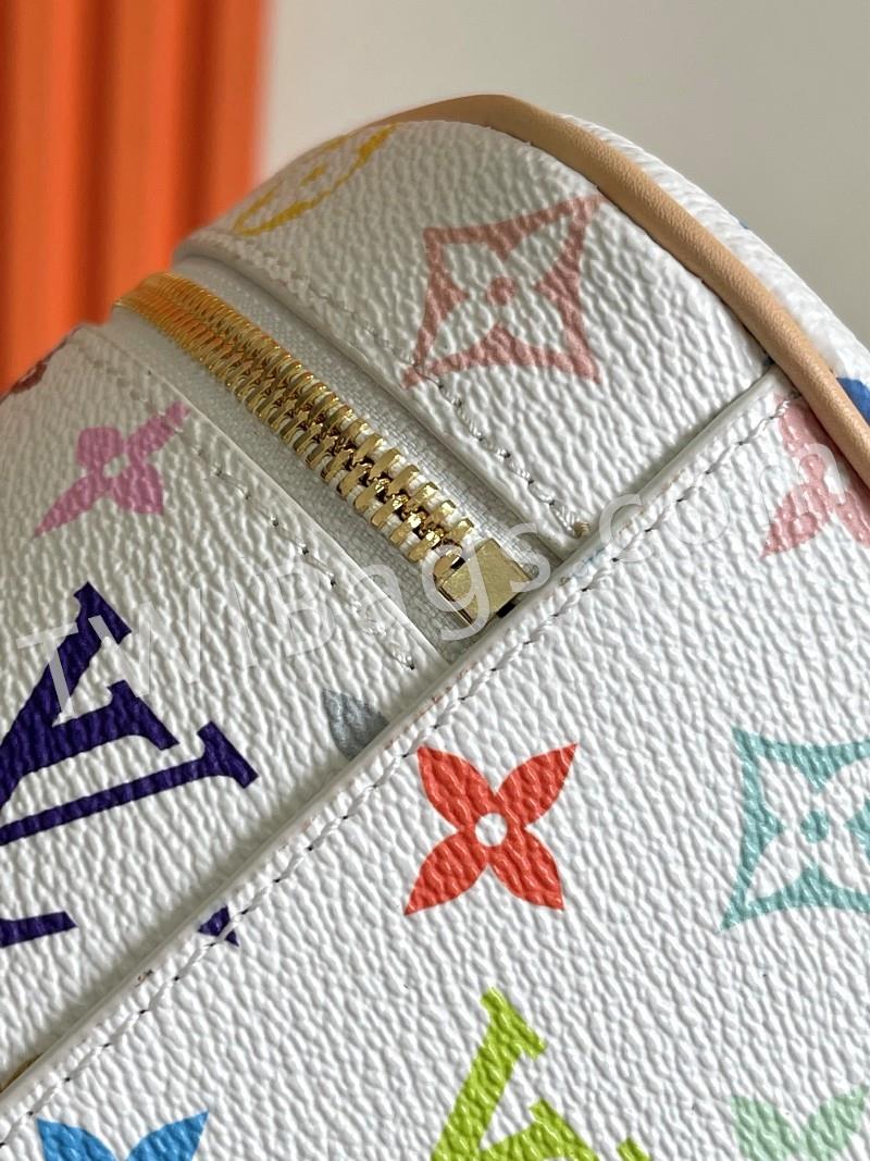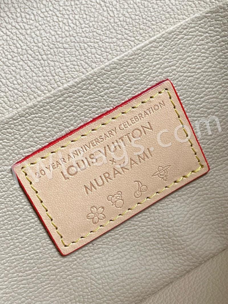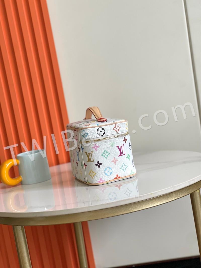 M13747 black and white This Nice Nano makeup bag from the Louis Vuitton x Murakami reissue collection uses colorful Monogram-coated canvas to create a delicate configuration, and in 2025, Japanese artist Takashi Murakami's agile style cleverly reinterprets the brand's classic elements. Top with leather handle and double zipper closure, washable fabric lining Extra function element 20x 13.5 x 12 cm (L x H x W )