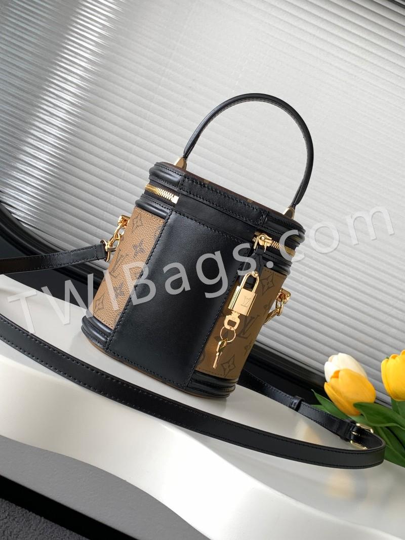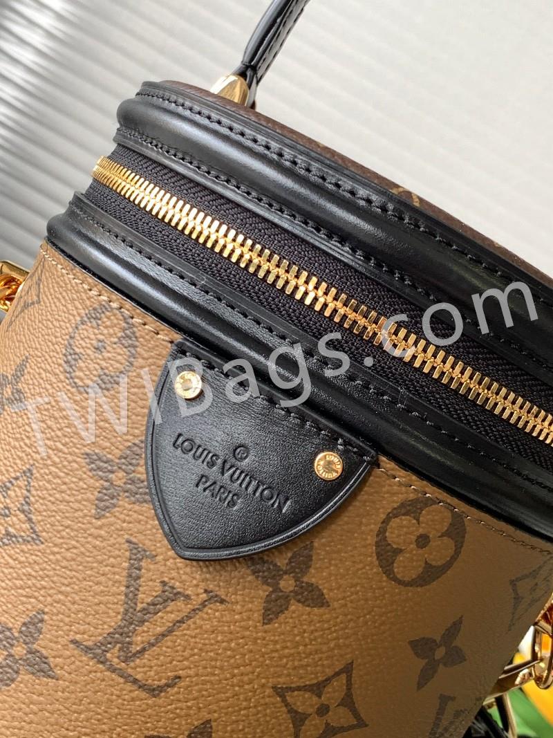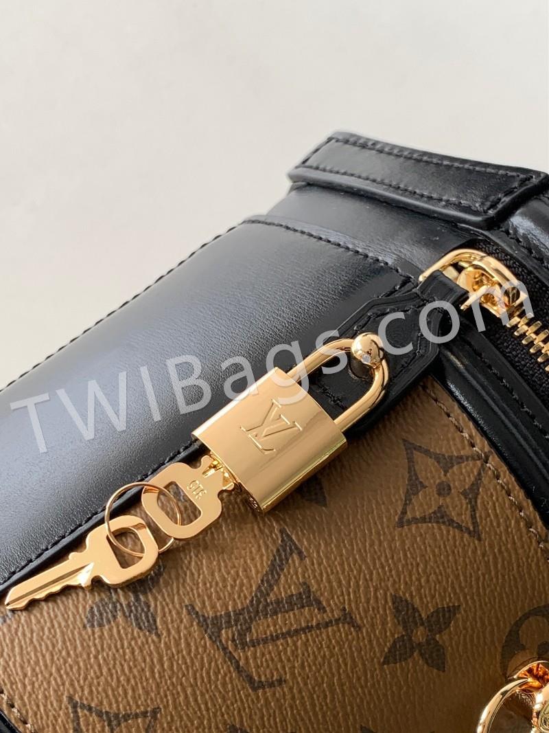 M43986 Yellow Flower VANITY Bag Borrowed from the historic LV Cannes vanity case shape Womenswear Artistic Director Nicolas Ghesquière recreates the classic charm of yesteryear with this semi-rigid bag Small size Monogram and Monogram Reverse coated canvas blend Exterior design with Louis Vuitton tradition Elegant Top handle and detachable leather shoulder strap Multiple ways to carry it Size 15x17x15cm