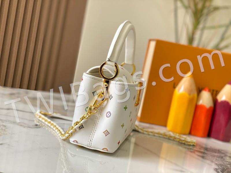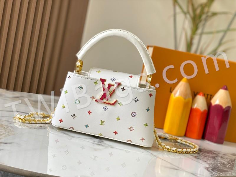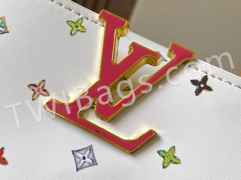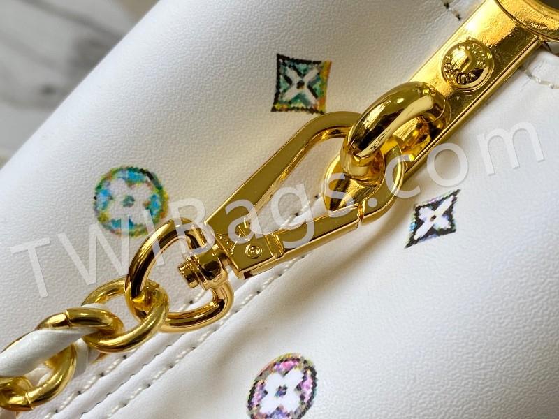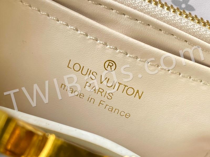 Highlights: LV initials, unique edge rings, fine Monogram flowers on the flap.