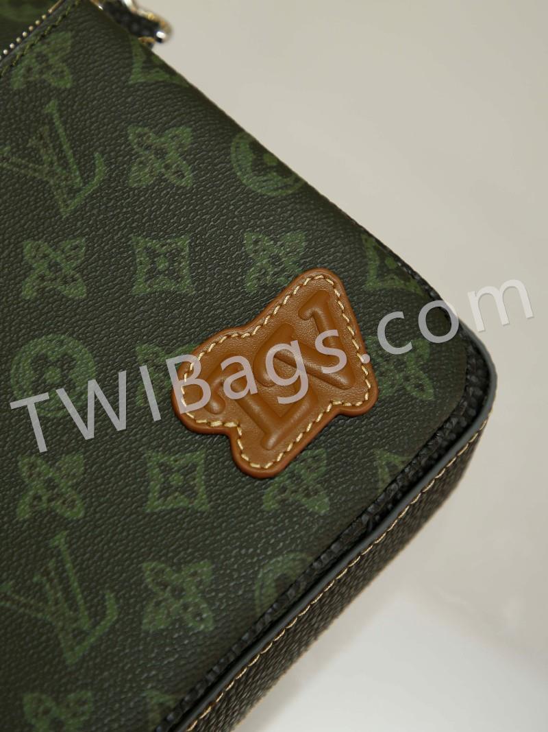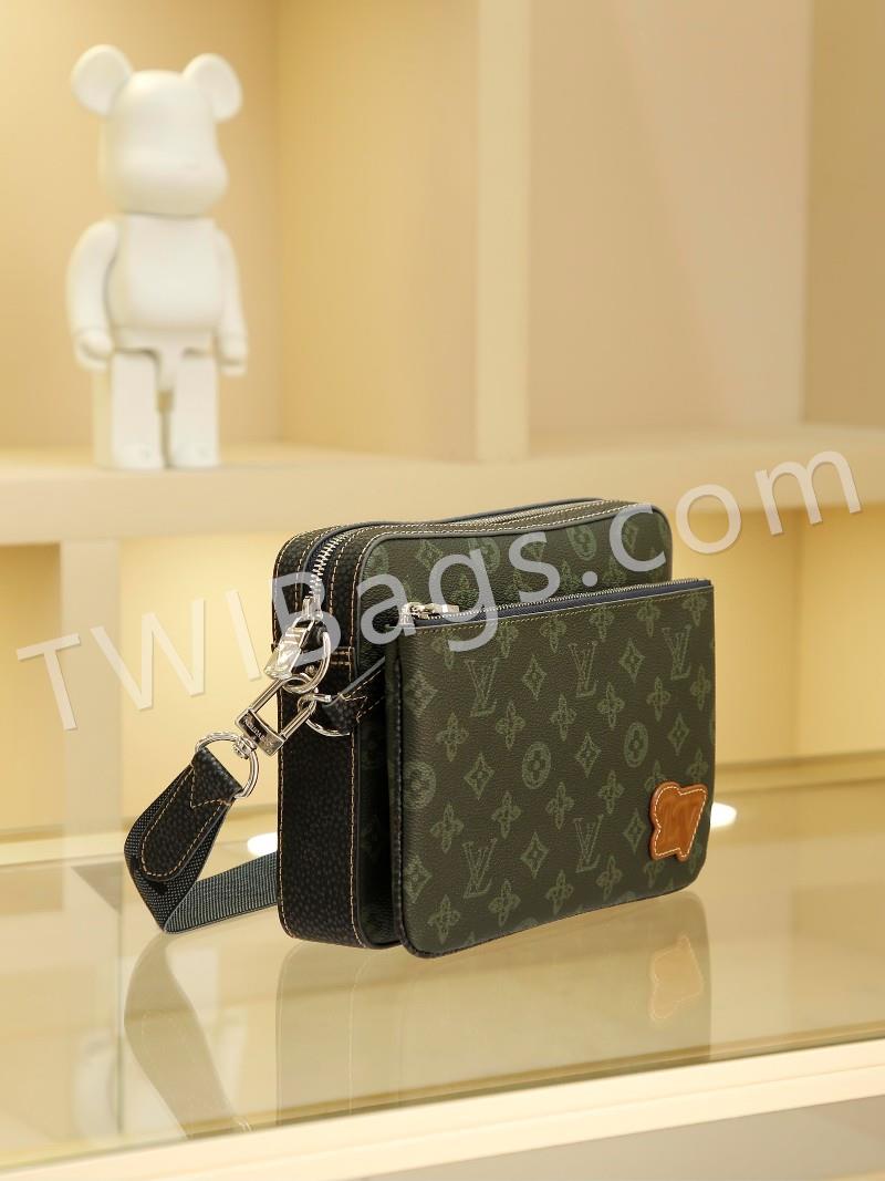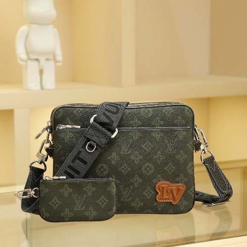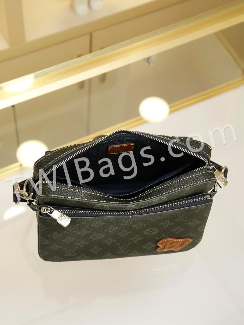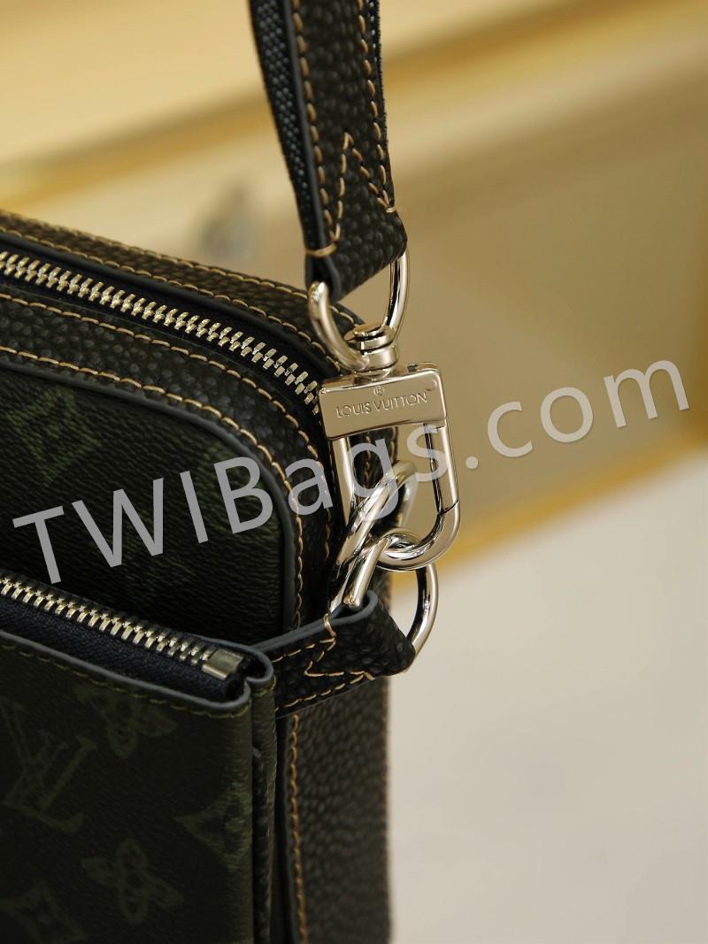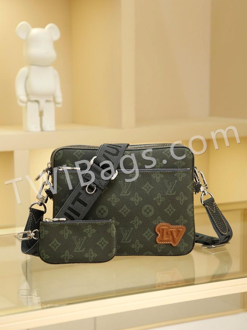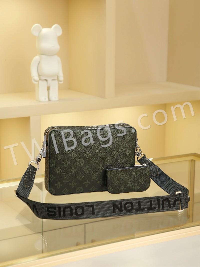 Men's 3-Piece Pochette Trio Pochette Men's 3-in-1 Bag is made from two classic canvases with a signature tonal grey pattern that accentuates the lines of this versatile buildable design, with a detachable zip pocket and a coin purse attached to the strap, size: 25x18x4cm