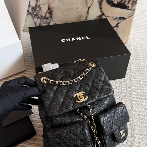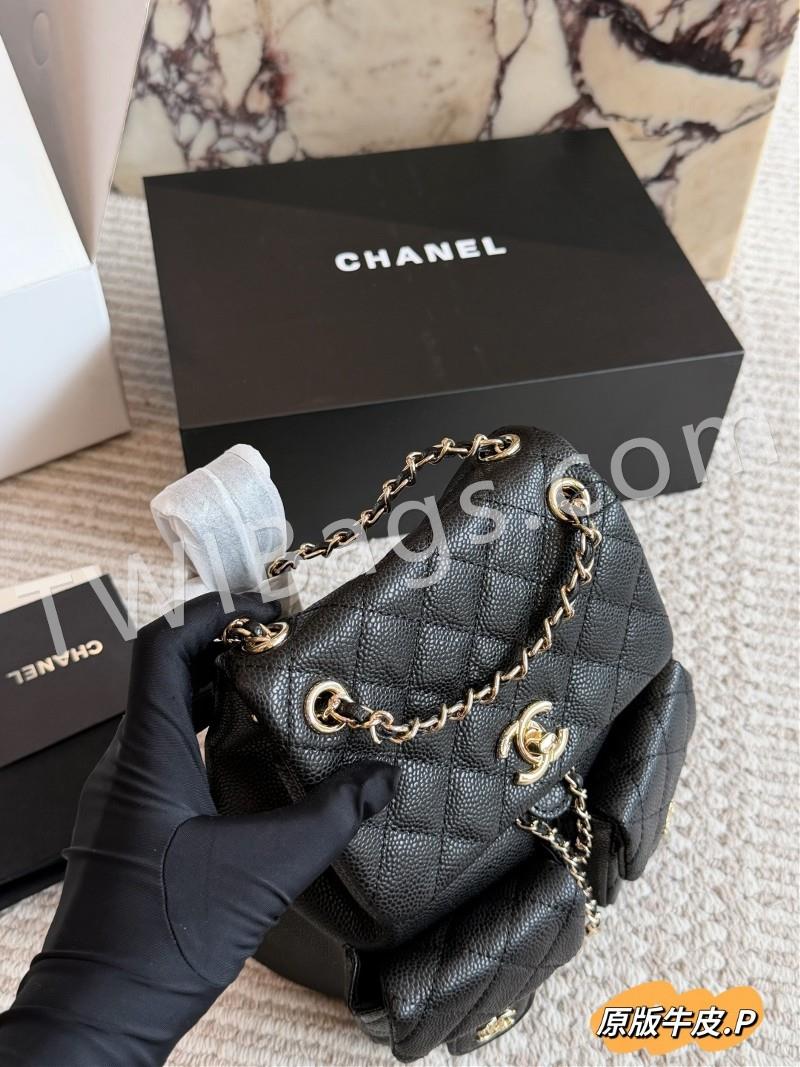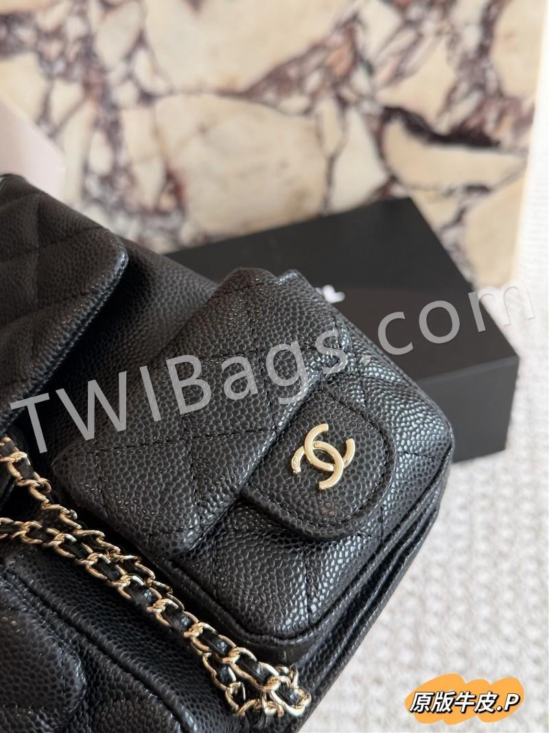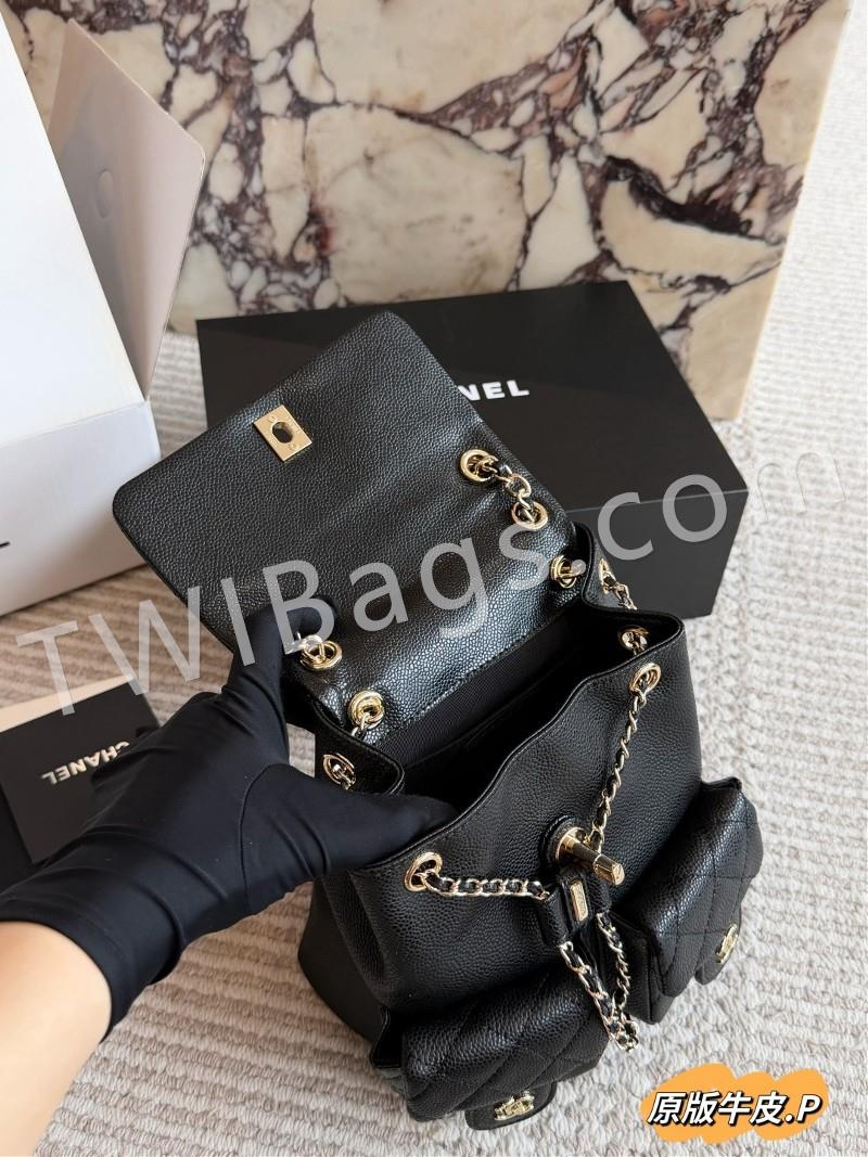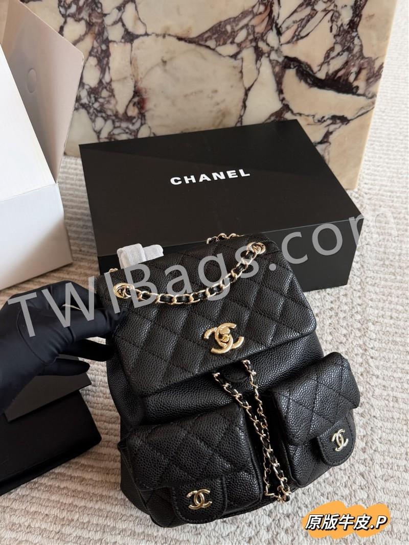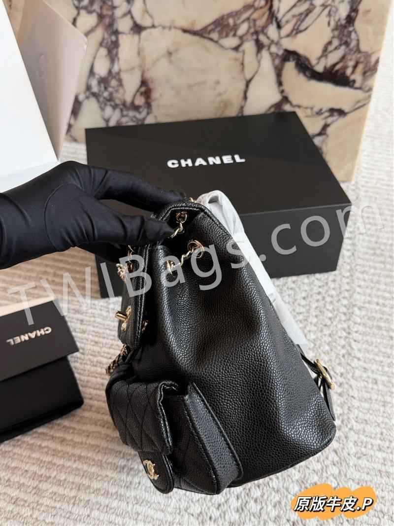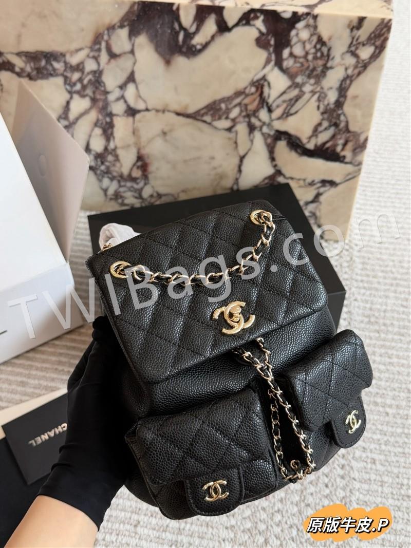 Chanel duma frog backpack, because the line of her double pockets is very cute, like two big eyes, so it is also called it, the frog shoulders are more stylish, the side will be narrower than the single pocket duma, so the upper body is more fitted, the inside is a large space, a rope at the mouth of the bag can be tightened, the anti-theft is very good, part of the shoulder strap is anti-piercing chain-part is leather shoulder strap, and there are adjustment buckles and holes, which can be adjusted at will