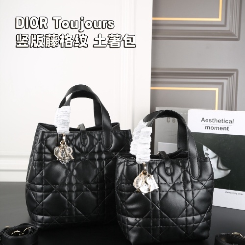 DIOR Toujours vertical cane-patterned indigenous bag one-shoulder tote bag