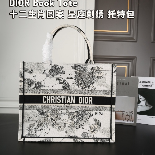 DIOR Book Tote Zodiac Pattern Constellation Embroidery Tote Bag Tote Bag One Shoulder